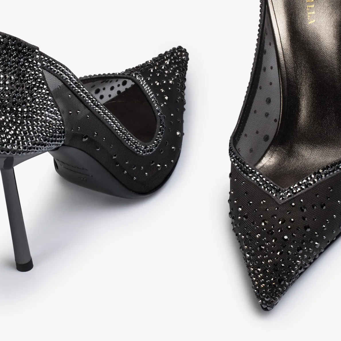 Washed nappa, mesh and crystals