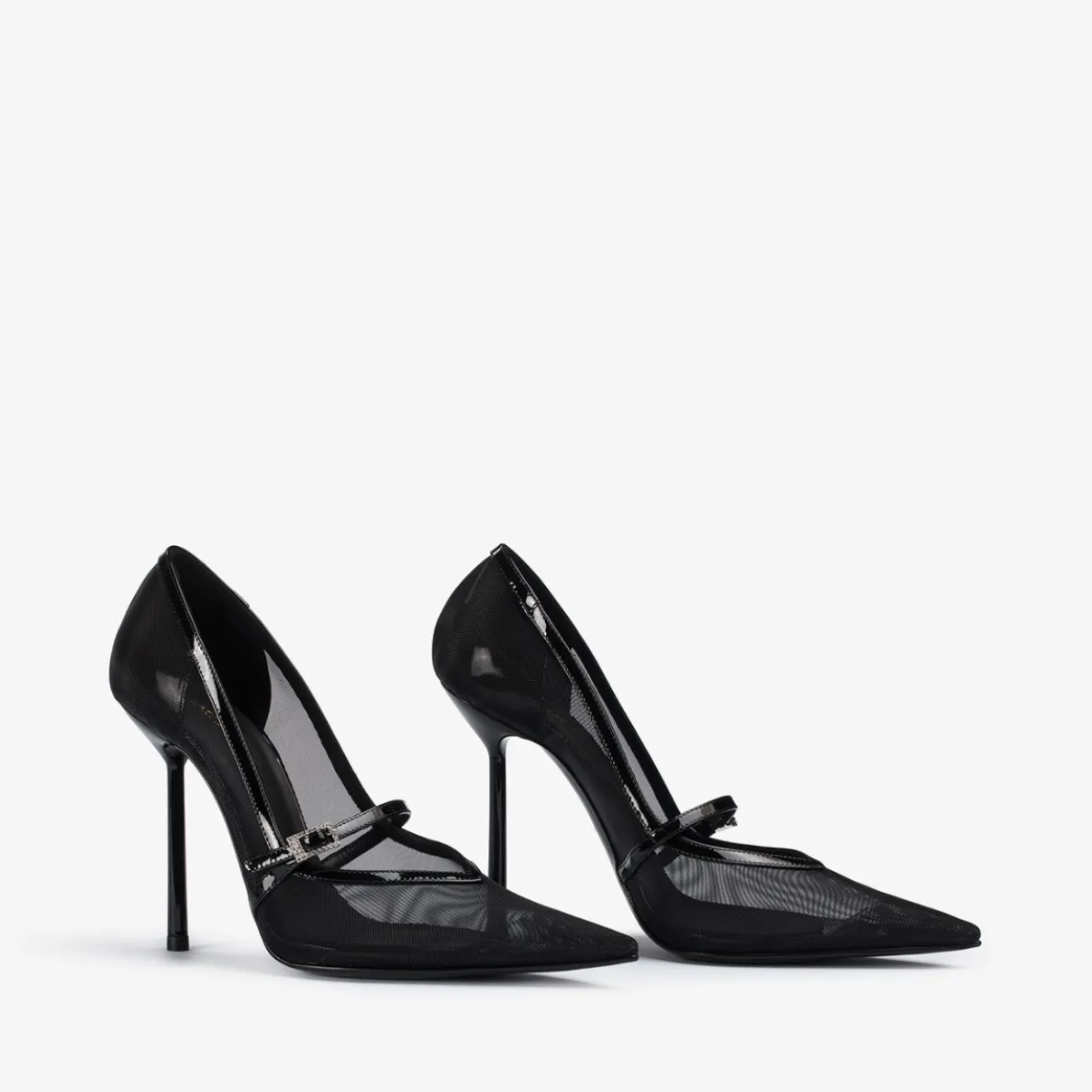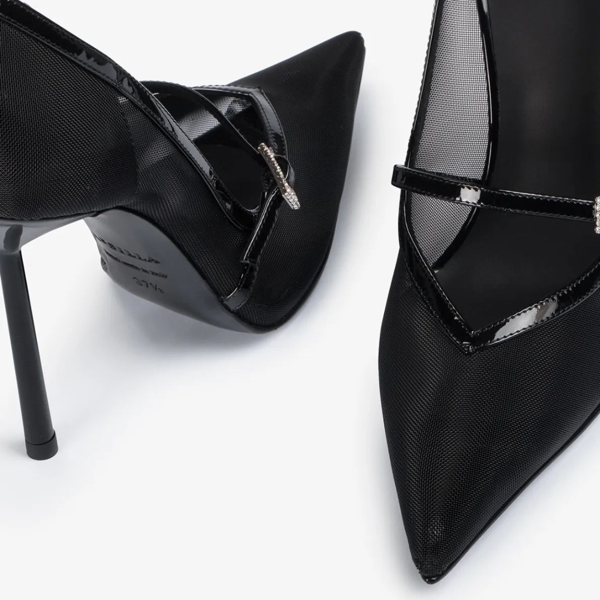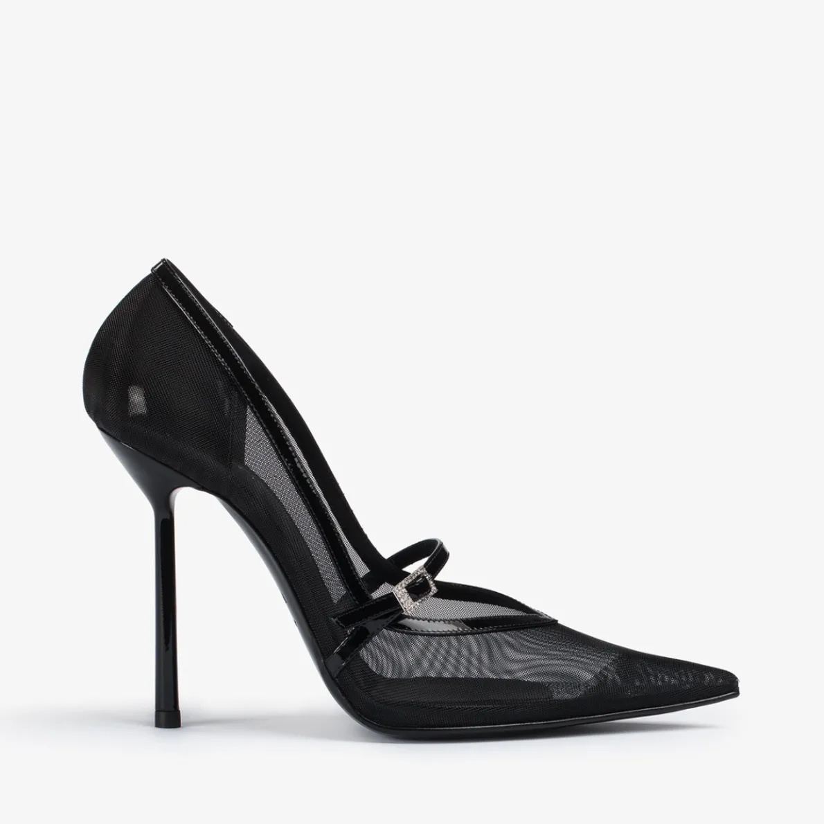 Patent calf leather and mesh